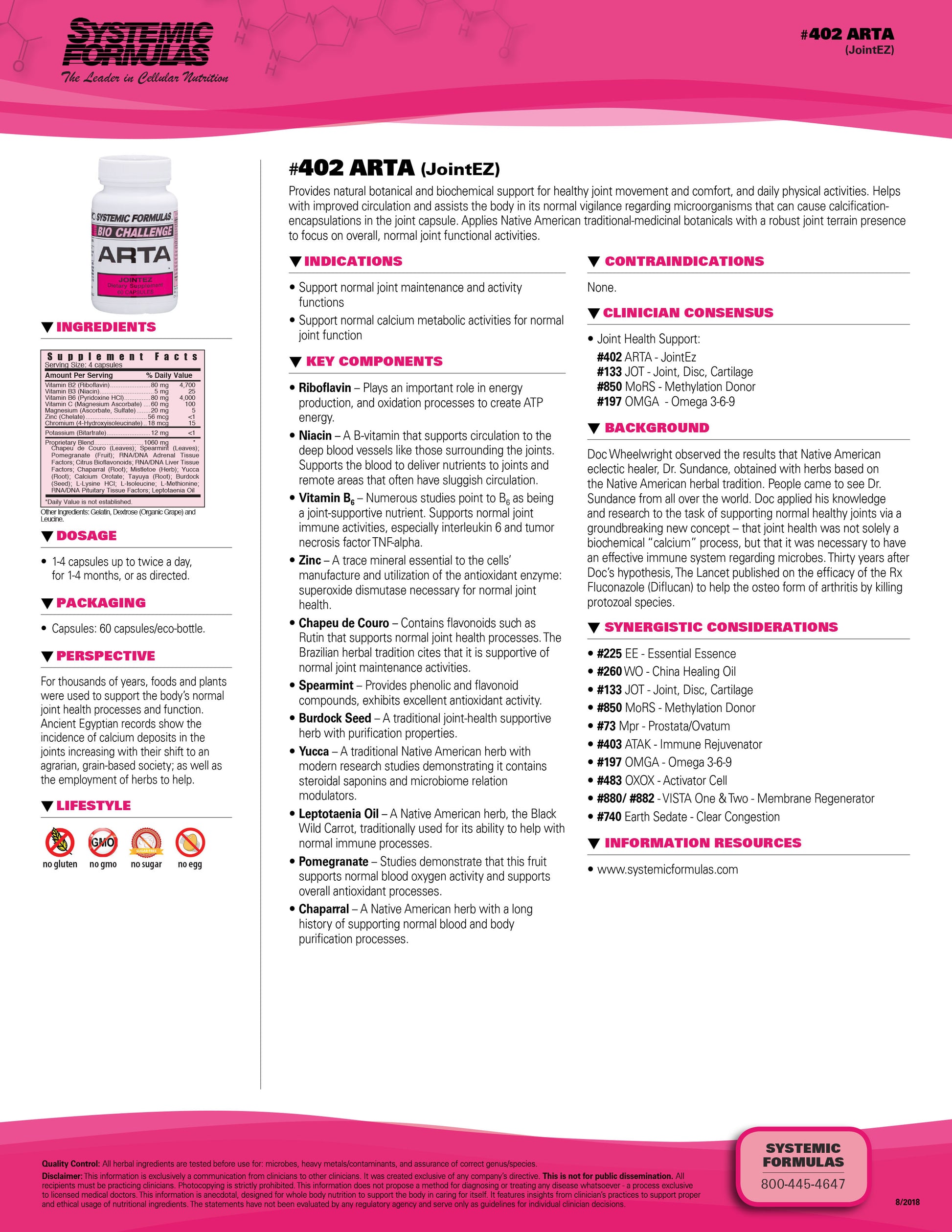 Provides natural botanical and biochemical support for healthy joints, comfort, and daily physical stress. Applies Native American traditional-medicinal botanicals with a robust circulation support blend to focus on the healthy calcium deposits and proper blood flow.