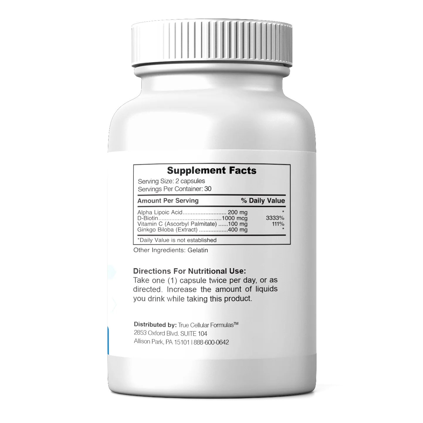 Experience cognitive enhancement like never before with BrainDTX by True Cellular Formulas. Our cutting-edge formula provides a clinical dose of Alpha Lipoic Acid, a potent antioxidant and cofactor for essential metabolic, mitochondrial, and neurological enzyme systems. Alpha Lipoic Acid plays a crucial role in supporting overall brain health.