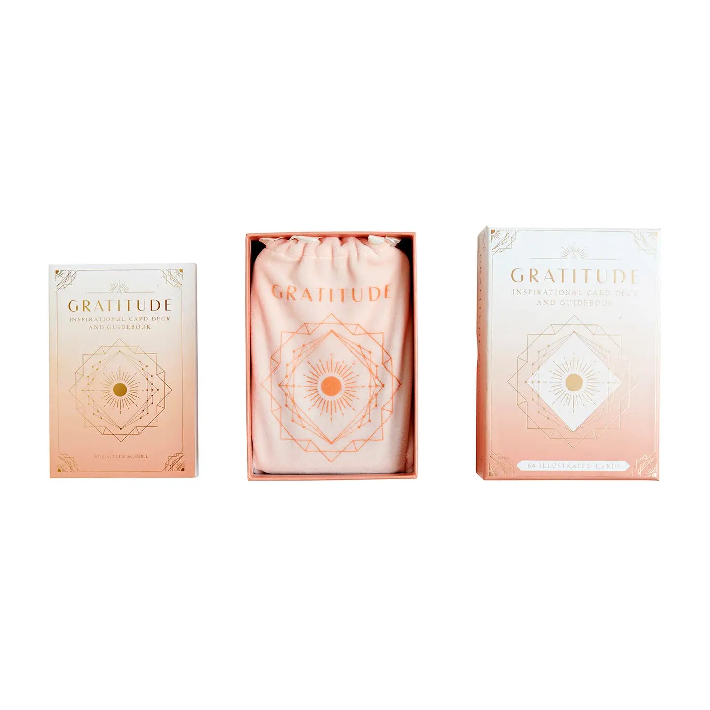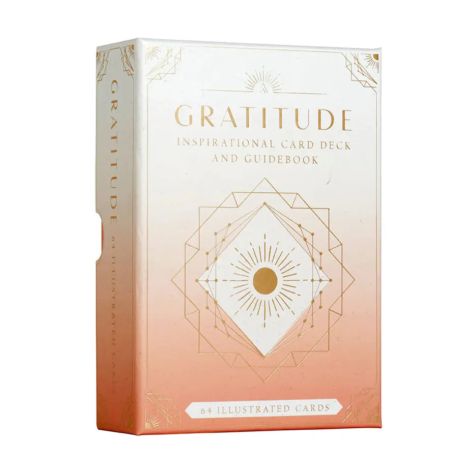 Each deluxe card deck includes: - 64 unique cards featuring gratitude quotes, prompts, and more - 176-page guidebook on the practice of gratitude - Keepsake storage box