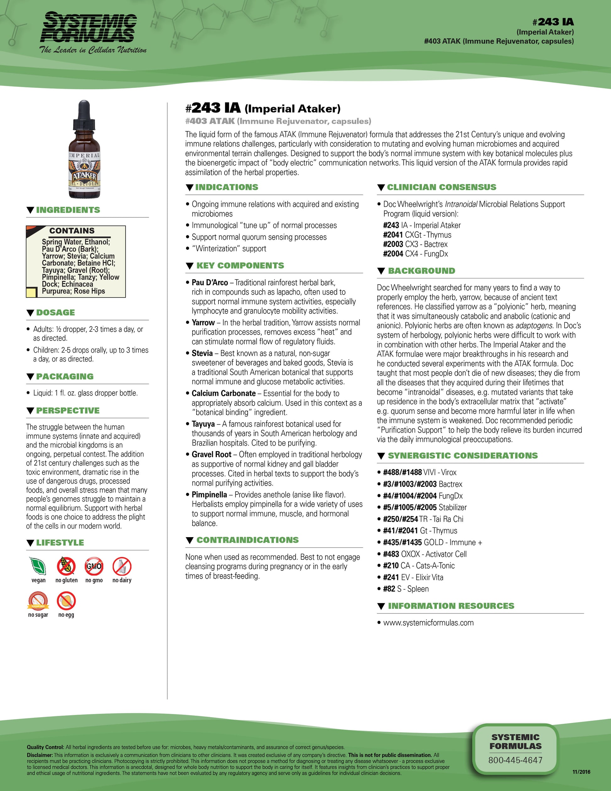 The liquid form of the famous ATAK (Immune Rejuvenator) formula that addresses immunological support. This herbal extract is designed to help the body enhance its natural immune system with both herbal properties and bioenergetic impact. It transports essential botanical factors with rapid assimilation to support immunological response.