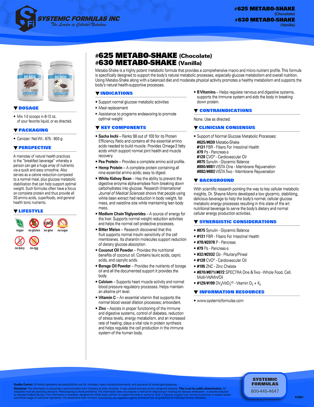 Chocolate Metabo-Shake is a highly potent metabolic formula which provides a pure macro and micro nutrient profile. Our formula is specifically designed to support patients struggling with poor diet. Using Metabo-Shake along with a balanced diet and moderate physical activity promotes a healthy metabolism, supports the pancreas sugar balance and optimal cardiovascular functions. Metabo Shake is a good source of potassium. Diets containing foods that are a good source of potassium and that are low in sodium may reduce the risk of high blood pressure and stroke.