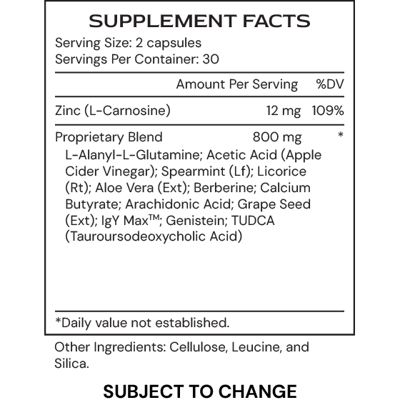 Repairs colonic permeability with nutrigenomic ingredients like L-glutamine that enhance the healthy expression of tight junction protein genes TJP1, TJP2 and TJP3.