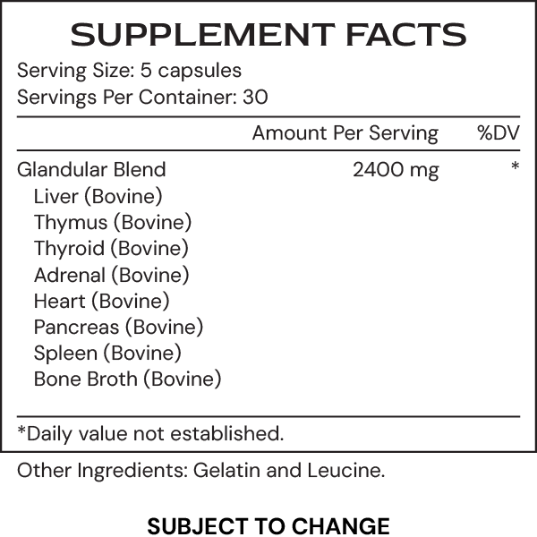 A blend of organ tissue extracts, also known as glandulars, that provide DNA, RNA, and amino acids for multi-organ support. Consuming these nutrient dense organ tissues also supports vitality and endurance.