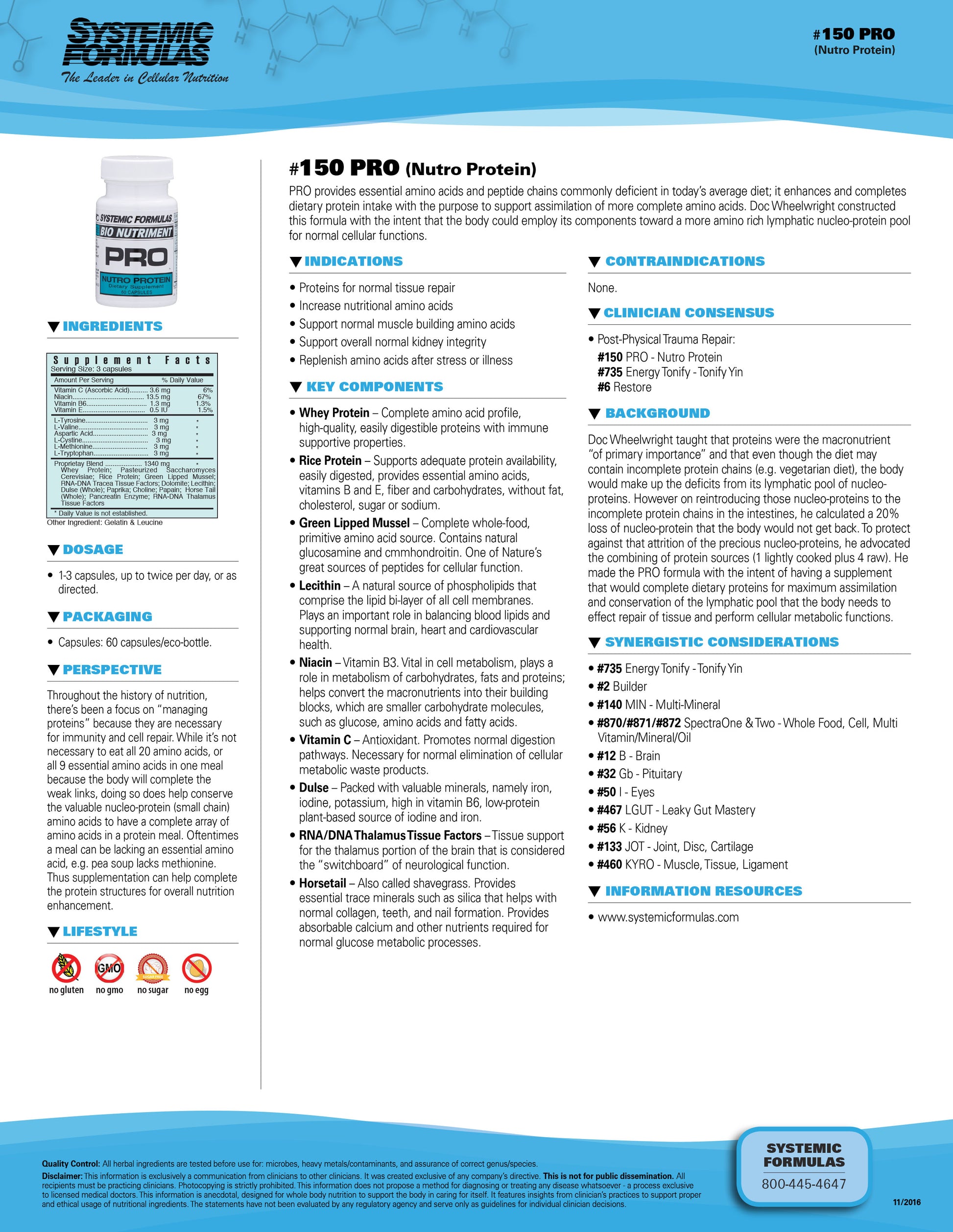 PRO provides essential amino acids and peptide chains commonly deficient in today’s average diet; it enhances and completes the dietary proteins thereby allowing the body to assimilate up to three times more protein by completing amino acid chains for greater ease of absorption. Additionally, it supports the lymphatic nucleoprotein pool which supports overall healthy body functions.
