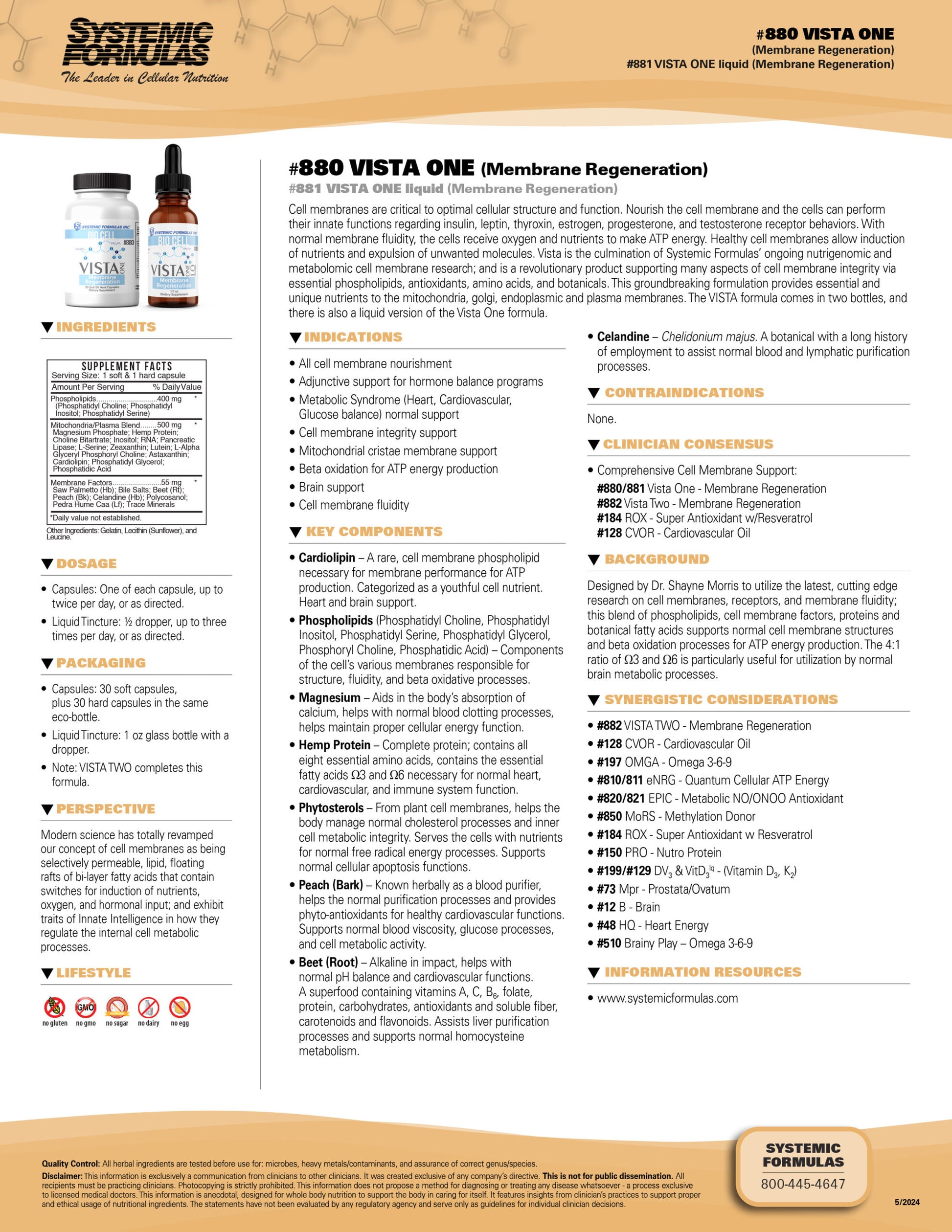 Vista is the culmination of Systemic Formulas’ ongoing nutrigenomic and metabolomic cell membrane research. Vista is a revolutionary product which supports cell membrane integrity via essential phospholipids, antioxidants, amino acids, and botanicals. This groundbreaking formulation provides essential and unique nutrients to the mitochondria, golgi, endoplasmic and plasma membranes. Vista promotes healthy cell membrane structure and helps maintain overall health.