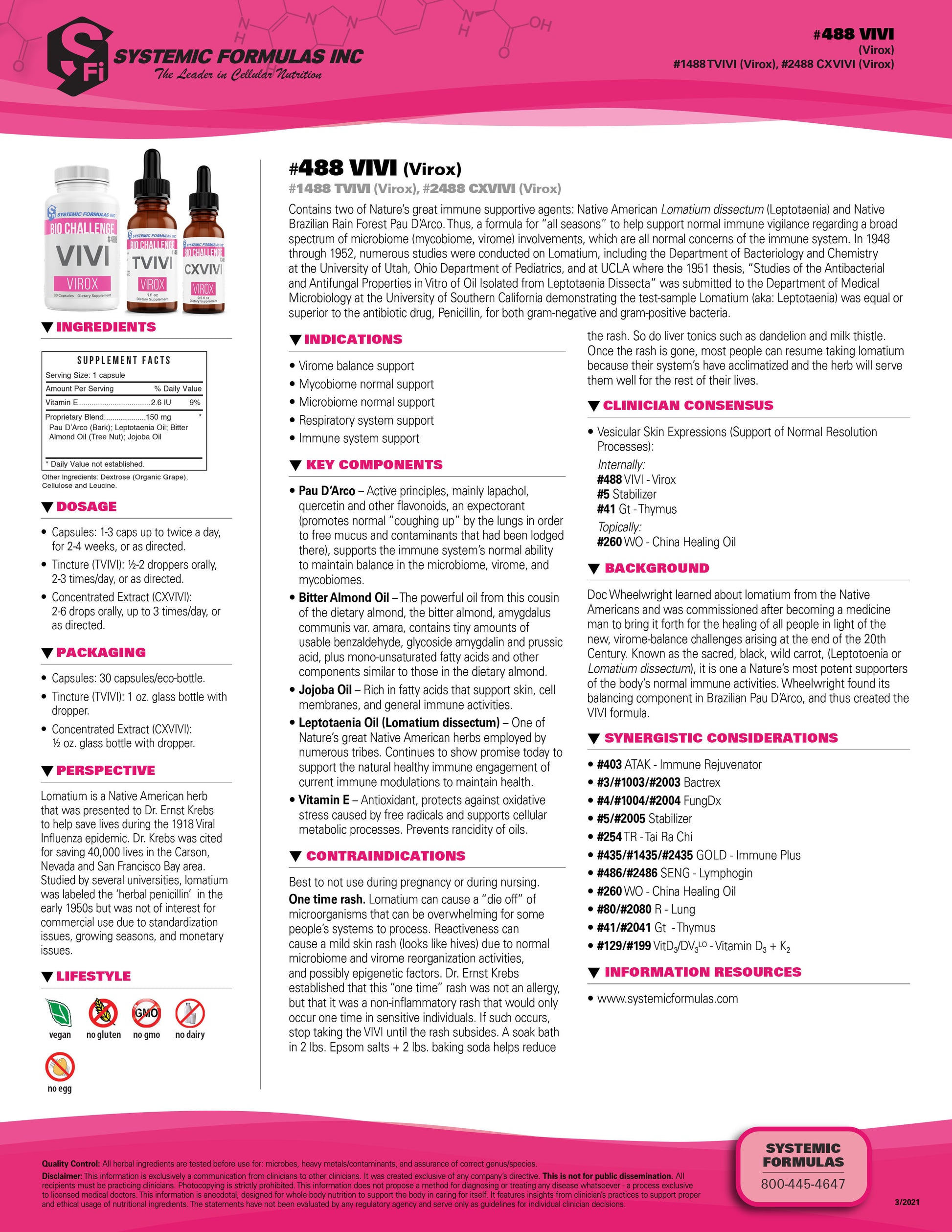 Also available as the liquid extract, #2488 – CXVIVI – VIROX and Tincture #1488 – TVIVI – VIROX